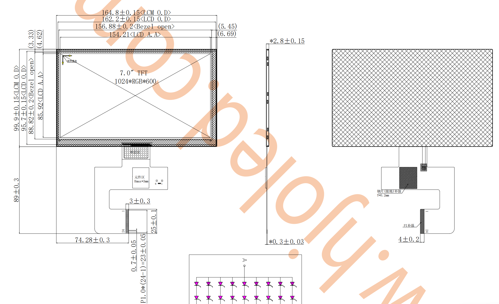 7 inci, 1024×600 (kira-kira nisbah bidang 15:9, hampir 16:9). Ini ialah spesifikasi paparan tahap kemasukan ke julat pertengahan biasa, kos efektif dan mampu memenuhi kebanyakan keperluan paparan antara muka grafik asas, tetapi ketumpatan pikselnya (kira-kira 169 PPI) tidak setinggi skrin resolusi lebih tinggi. IPS (In-Plane Switching) menawarkan kelebihan seperti sudut pandangan yang luas, pembiakan warna yang baik dan konsistensi yang tinggi. Tidak kira sudut tontonan, pengecilan warna dan kecerahan adalah minimum, menjadikannya ideal untuk aplikasi yang memerlukan berbilang penonton atau operasi dari sudut yang berbeza (seperti kawalan industri, sistem kawalan rumah pintar dan peranti mudah alih).