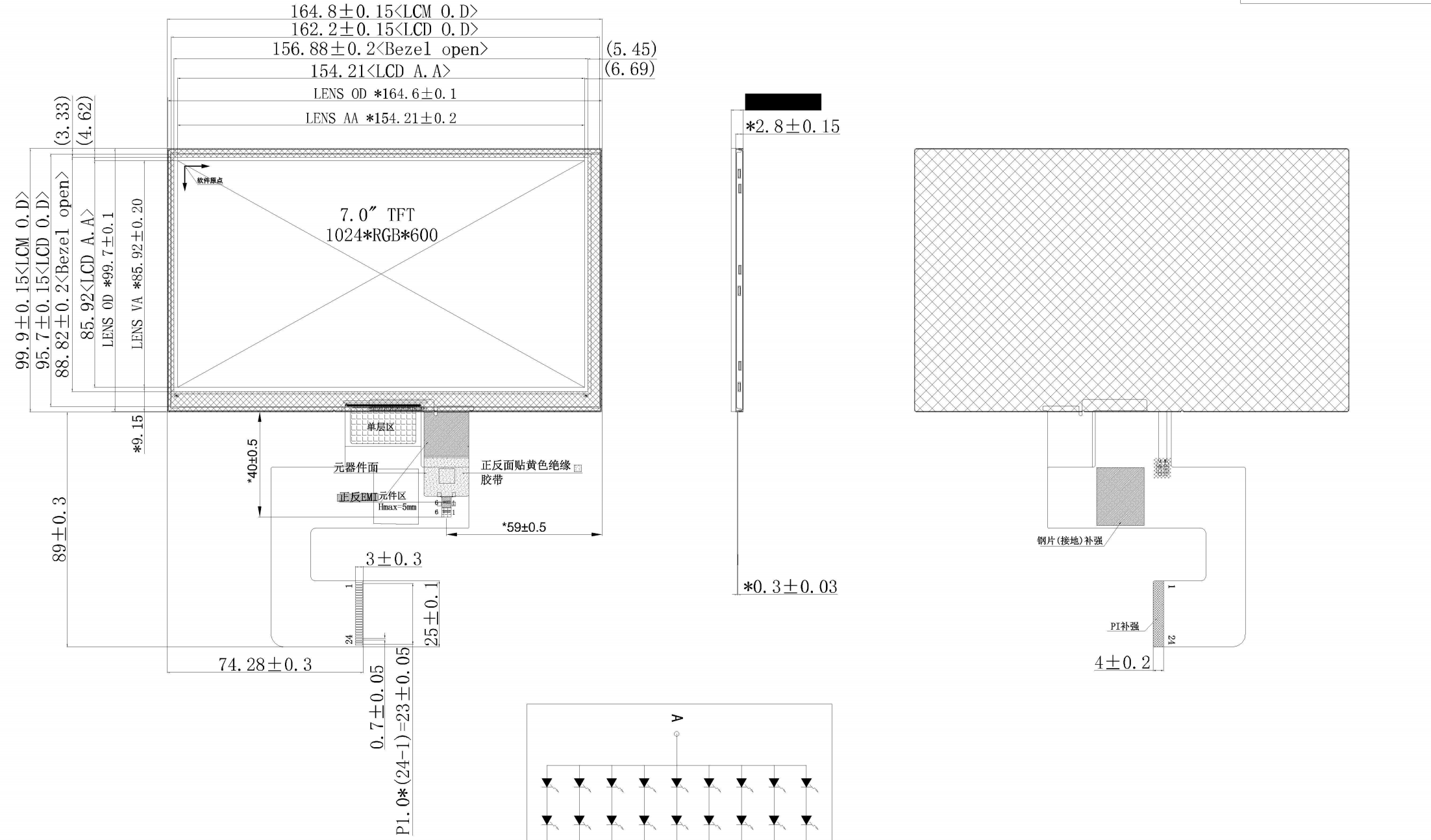 Skrin landskap TFT 7-inci biasanya mempunyai resolusi 1024*600 dan antara muka MIPI 4 saluran. Skrin LCD 2-saluran jarang berlaku, dan yang menyepadukan kabel skrin sentuh kapasitif dengan kabel skrin LCD adalah lebih jarang, meningkatkan beban kerja untuk jurutera perkakasan. Jurutera Teknologi Shenzhen Hongjia telah berjaya menghasilkan skrin landskap IPS 7-inci secara besar-besaran dengan resolusi 1024*600, antara muka MIPI 2 saluran dan skrin sentuh kapasitif. Penyambung 24-PIN menyepadukan skrin sentuh dan isyarat paparan, dengan antara muka kabel tunggal untuk reka bentuk pelanggan yang lebih mudah.