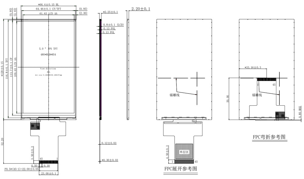 Bagi jurutera yang kerap mereka bentuk perkakasan, skrin landskap 5 inci dengan resolusi 800*480 dan antara muka RGB adalah perkara biasa. Hari ini, Encik Huang, pengurus jurutera di Shenzhen Hongjia Technology, akan memperkenalkan aSkrin menegak 5 incidengan resolusi 480*854. Skrin ini mempunyai bezel sempit dan nisbah bidang 16:9, menjadikannya sesuai untuk mesin yang memerlukan bezel sempit. Ia meningkatkan estetika mesin pelanggan, menghalang bezel daripada kelihatan terlalu lebar. Menyokong antara muka RGB dan MIPI, ia menggunakan IC ILI9806E matang, menawarkan prestasi anti-statik dan anti-gangguan yang sangat baik, menjadikannya sesuai untuk digunakan dalam aplikasi yang menuntut seperti peralatan industri, peralatan ketenteraan dan dron. Rajah struktur ditunjukkan di bawah. Penyesuaian juga disokong.