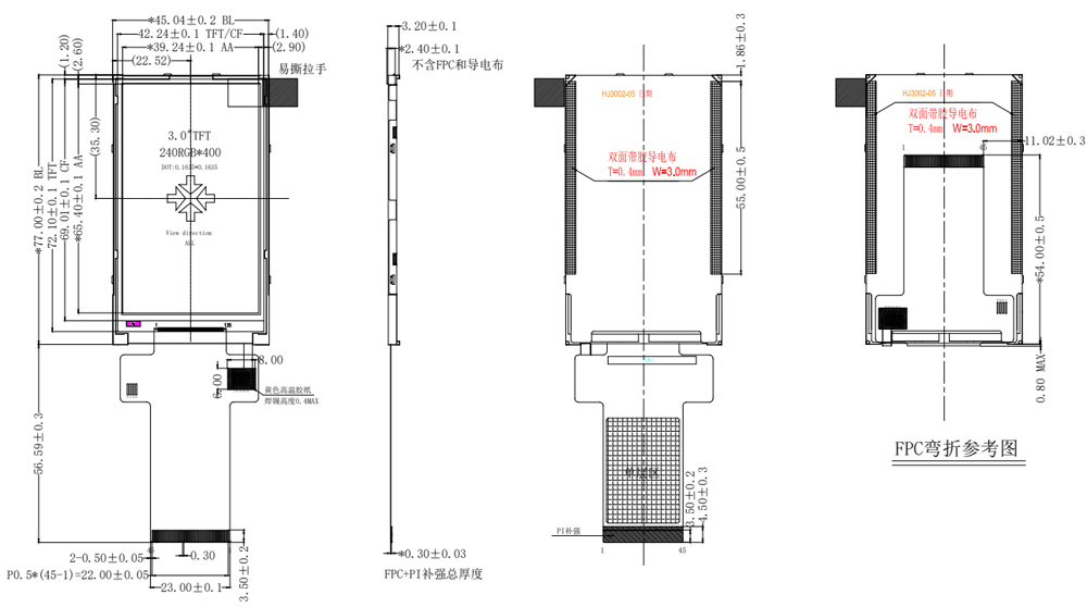 Parameter Item Saiz 3.0 inci (pepenjuru) Jenis Panel Resolusi IPS 240 (RGB) * 400 (biasanya dikenali sebagai WQVGA) Jenis Antaramuka Antara muka SPI dan antara muka MCU Status Bekalan Bekalan jangka panjang